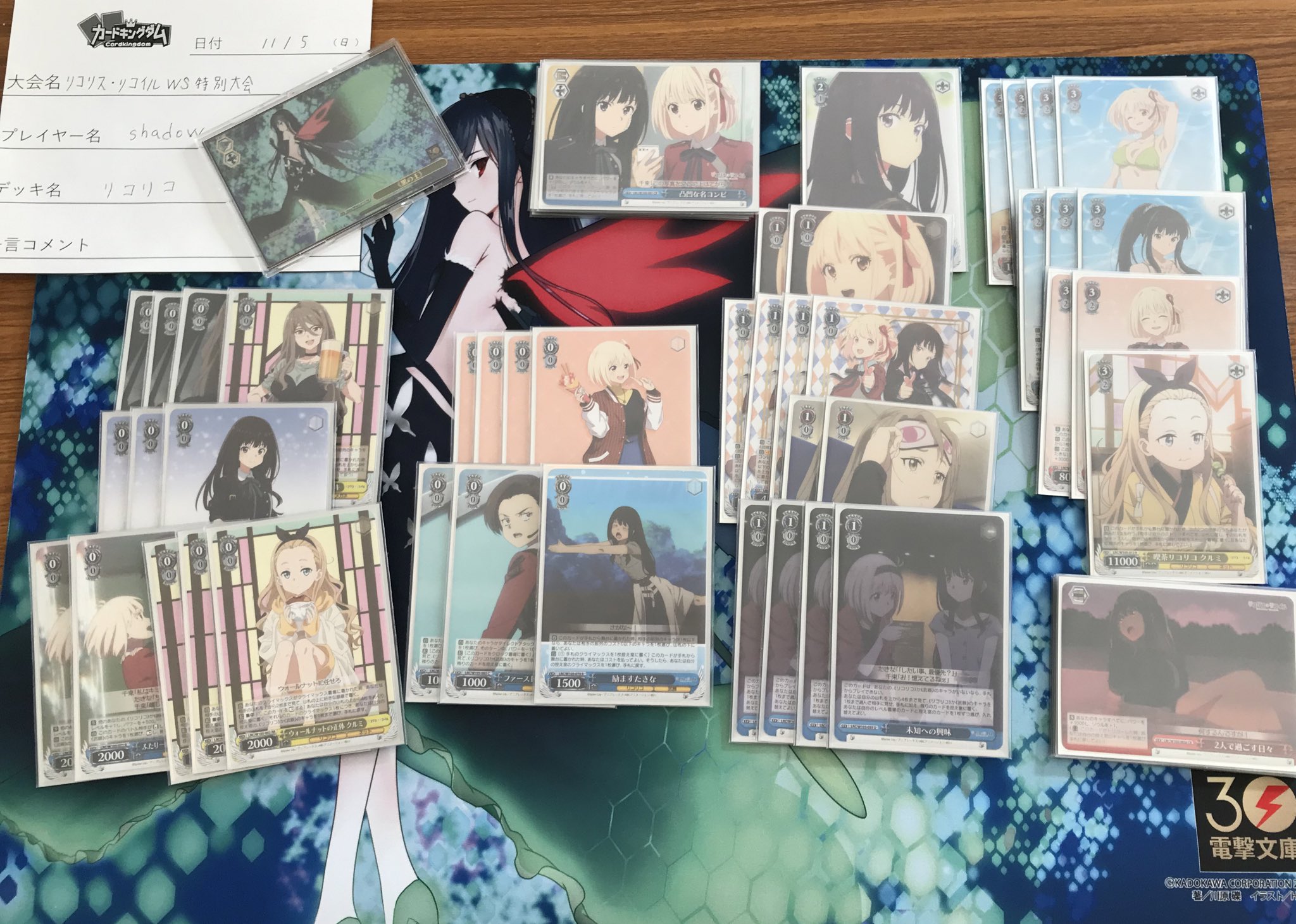 【WS】リコリス・リコイル優勝デッキレシピ(カードキングダムイオンタウン周南店)【ヴァイスシュヴァルツ】 #WSdeckLRC