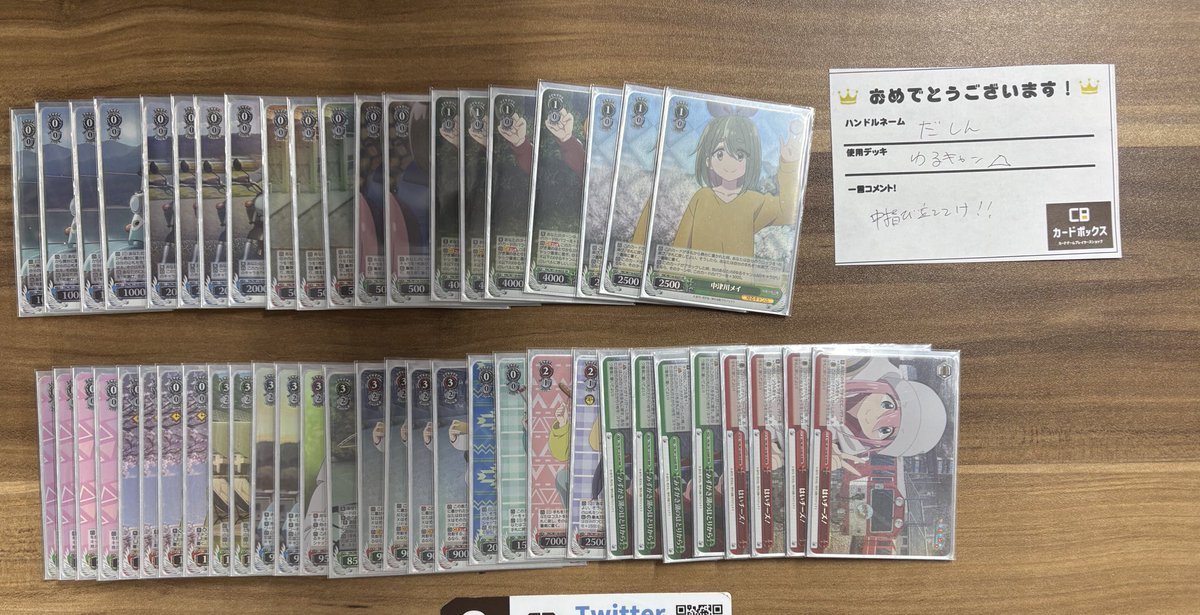 【WS】ゆるキャン△優勝デッキレシピ(カードボックス横浜西口2号店@金曜10時オープン❗️)【ヴァイスシュヴァルツ】 #WSdeckYRC 当サイトではアフィリエイト広告を利用して商品を紹介しています。 デッキレシピゆるキャン△ X Facebook コピー 2025.03.03 デッキレシピゆるキャン△ ヴァイスシュヴァルツの店舗大会で優勝したデッキやおすすめのデッキレシピを紹介します Weiβ Schwarz shop tournaments winner deck Yurucamp△【WS】優勝牌組 尤魯坎普△ ゆるキャン△のデッキを組むなら安くて在庫が豊富な遊々亭がおすすめです♪ 駿河屋遊々亭メルカリebay ブースターパック 『ゆるキャン△ SEASON3』 ブースターパック 『ゆるキャン△ SEASON3』を購入する。 駿河屋遊々亭Amazon楽天あみあみ トライアルデッキ 『ゆるキャン△ SEASON3』 トライアルデッキ 『ゆるキャン△ SEASON3』を購入する。 駿河屋遊々亭Amazon楽天あみあみ カードボックス横浜西口2号店 (@cbstyokohama) on X本日のWSショップ大会優勝は「だしん」さんの「ゆるキャン△」です🏕️♨️「中指び立ててけ!!」とのことです❕👍🏻優勝おめでとうございます🎊🎊#カードボックス横浜西口2号店 【ヴァイス】環境デッキ・優勝デッキ・おすすめデッキ・まとめ【WS|ヴァイスシュヴァルツ】 カテゴリから他のデッキも探せますよ!↓