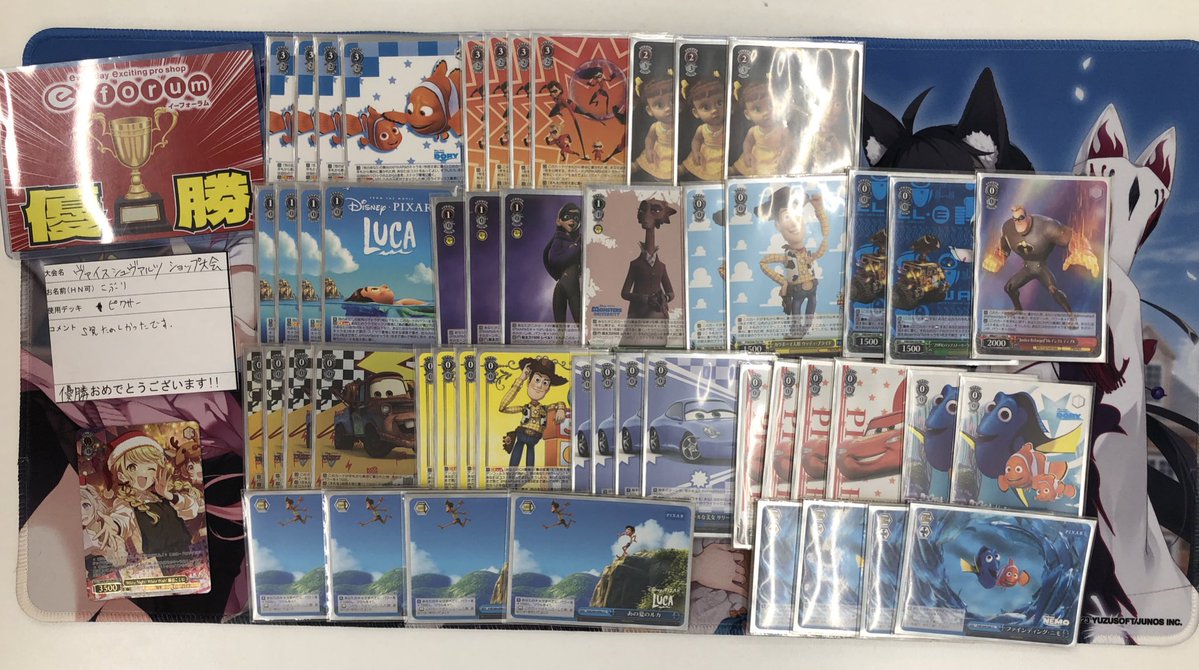 【WS】ピクサー優勝デッキレシピ(イーフォーラム河内長野店【ゲームトレカ】)【ヴァイスシュヴァルツ】 #WSdeckPXR 当サイトではアフィリエイト広告を利用して商品を紹介しています。 デッキレシピピクサー X Facebook コピー 2025.09.01 デッキレシピPIXAR ヴァイスシュヴァルツの店舗大会で優勝したデッキやおすすめのデッキレシピを紹介します Weiβ Schwarz shop tournaments winner deck Pixar【WS】優勝牌組 Pixar PIXARのデッキを組むなら安くて在庫が豊富な遊々亭がおすすめです♪ 駿河屋遊々亭メルカリebay ブースターパック / Toy Story 30YEARS&BEYOND ブースターパック / Toy Story 30YEARS&BEYONDを購入する。 駿河屋遊々亭Amazon楽天あみあみ ブースターパック / Disney100 ブースターパック / Disney100を購入する。 駿河屋遊々亭Amazon楽天あみあみ ブースターパック / PIXAR CHARACTERS ブースターパック / PIXAR CHARACTERSを購入する。 駿河屋遊々亭Amazon楽天あみあみ トライアルデッキ+(プラス) Cars トライアルデッキ+(プラス) Carsを購入する。 駿河屋遊々亭Amazon楽天あみあみ https://twitter.com/eforum_staff/status/1955953979181162885 【ヴァイス】環境デッキ・優勝デッキ・おすすめデッキ・まとめ【WS|ヴァイスシュヴァルツ】 カテゴリから他のデッキも探せますよ!↓