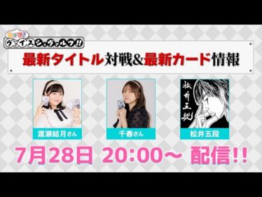 【発売前タイトルで最速対戦!】レッツ!ヴァイスシュヴァルツ!!【WS】動画概要コーナー紹介お知らせコーナー!さらに!発売前商品を使った対戦も!🔽前回の配信はこちら!▼渡瀬結月X::▼千春X::▼ヴァイスシュヴァルツX::渡瀬結月 #千春 #...